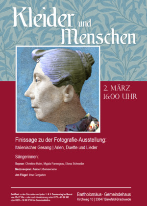 Seitdem ich den Vorsitz des Künstlerinnenforums abgegeben habe, vertiefe ich weitere künstlerische Neigungen, den Gesang und das Schreiben. Ich nehme wieder verstärkt Gesangsunterricht und kümmere mich um die Fertigstellung meines Buches „Klara“. Außerdem organisiere ich für den 2.3.2025 zur Finissage meiner Fotoausstellung „Kleider und Menschen“ einen Gesangsnachmittag mit italienischen Arien von Gluck, Händel, Cacchini und anderen und trete zusammen mit den Opernsängerinnen Elena Schneider, Aukse Urbanaviciene und der Konzertpianistin Irina Gorgadze im Gemeindehaus der Bartholomäusgemeinde in Bielefeld Brackwede auf. Es wird ein großer Erfolg.