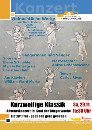 Am 29.11.2025 trete ich zusammen mit den Opernsängerinnen Elena Schneider, Aukse Urbanaviciene und Myjala Pansegrau, dem Opernsänger Carlos Rivas und dem Musicalchef des Theaters William Ward Murta als Pianisten in der Bürgerwache am Siegfriedsplatz auf.